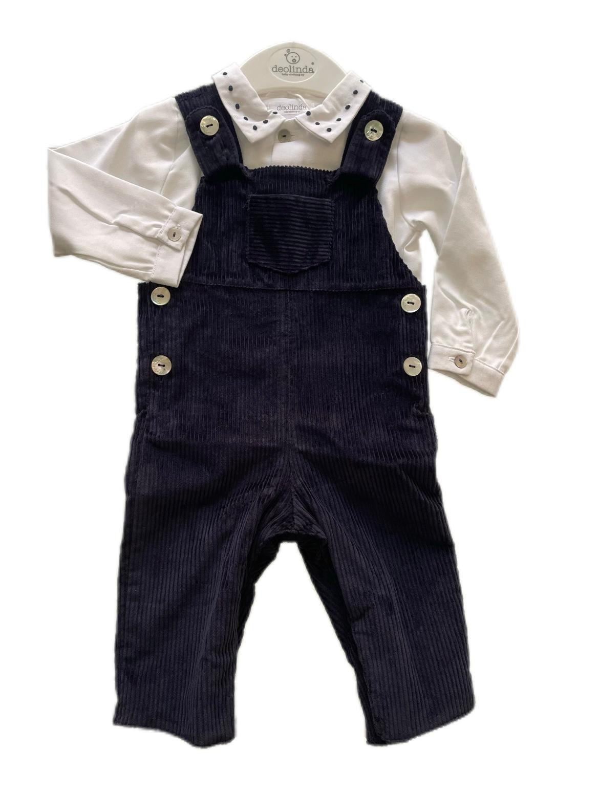 Completo 2 pezzi con salopette in velluto BLU NOTTE - con bottoni in madreperla